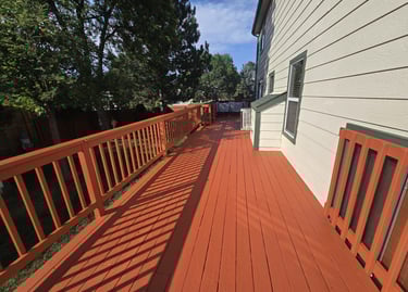Staining a deck is challenging for many homeowners, even when they aim to do it themselves. It's essential to have the right formula for deck staining or painting, dependable tools for a smooth finish, and methods to guide you. Keep in mind, good deck staining also involves deep cleaning, sanding, and applying several layers of stain overlooking these steps will not achieve the professional grade finish that an expert can provide right from the start. As part of our comprehensive residential exterior painting offerings, our crew can take care of your deck or fence starting with preparing the surface for staining, addressing any flaws through sanding, and finishing it off with high-quality polyurethane.